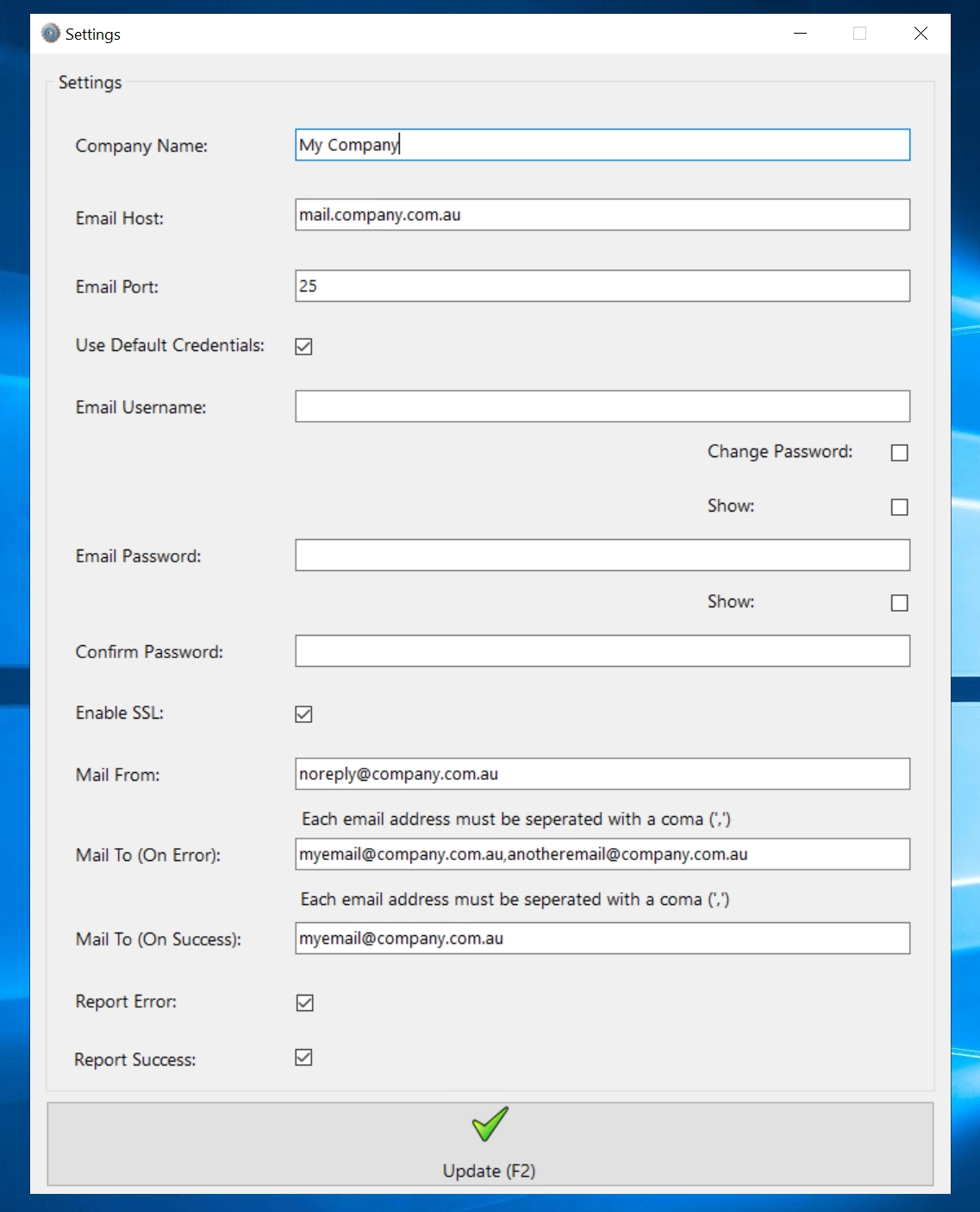 Supports multiple email addresses on fail and or on success
